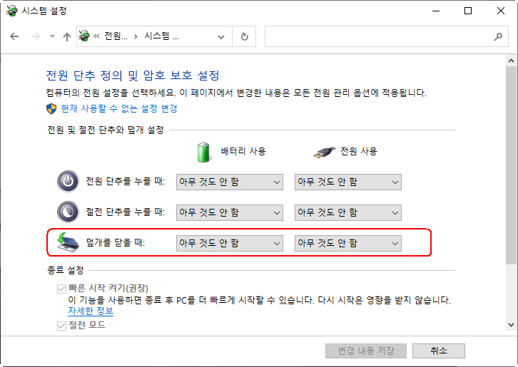 노트북 뚜껑 열면 윈도우즈 다중디스플레이 설정 초기화되는 문제 해결