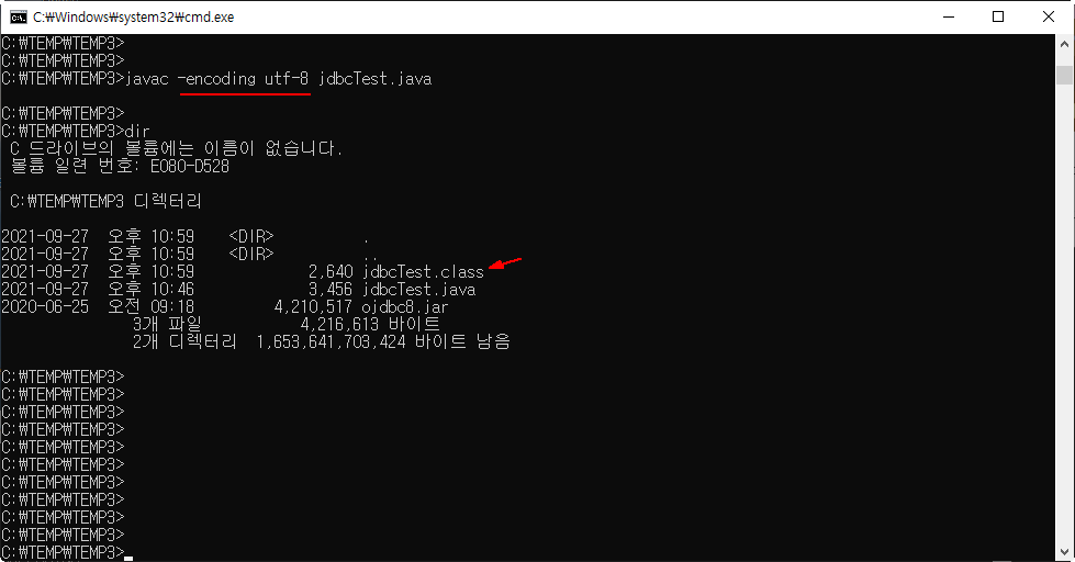 에러없이 javac 컴파일이 되었고, *.class 파일도 만들어졌습니다.