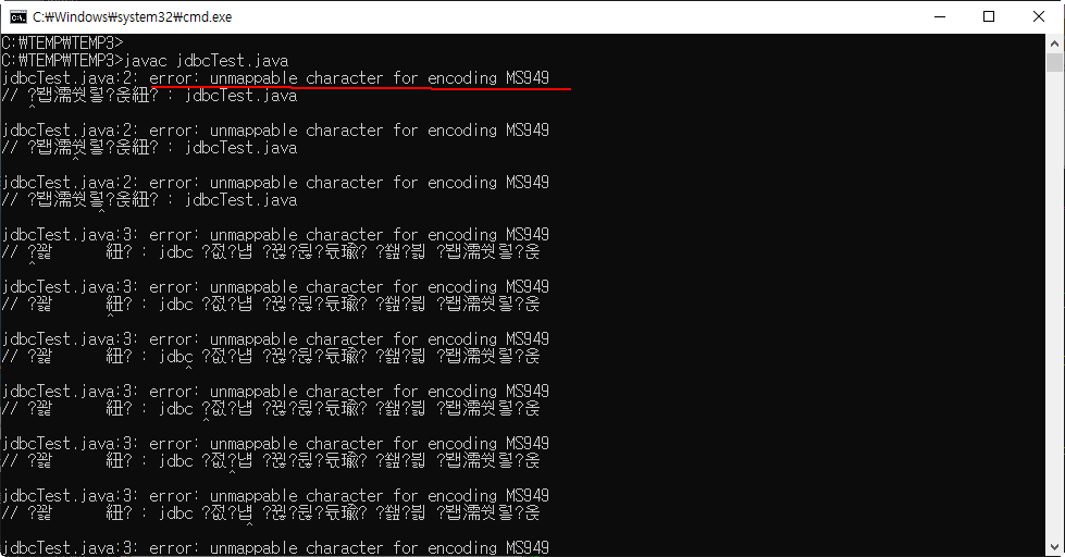2021. 9. 27. 23:03Java 프로그램을 컴파일 할때, unmappable character for encoding MS949 에러가 잔뜩 뜨는 경우가 있습니다.