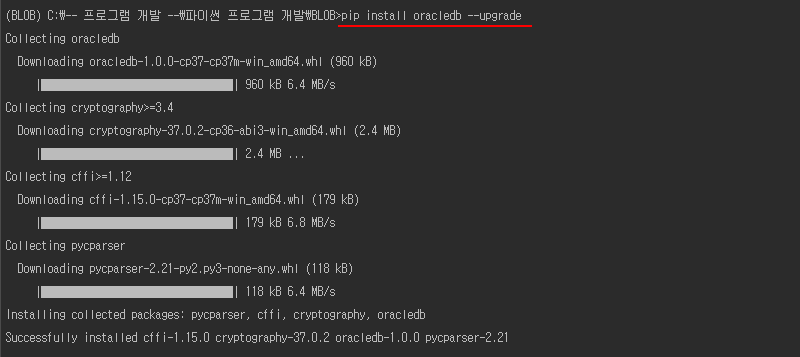 pip install oracledb -upgrade 커맨드로 간단하게 설치가 됩니다.