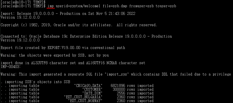 Import: Release 19.0.0.0.0 - Production on Sun Nov 6 12:43:10 2022