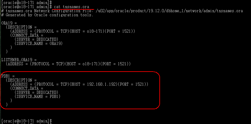 위와같이 tnsnames.ora 에 Oracle 21c DB 에 연결하는 tns 를 설정해주고, (PDB1)