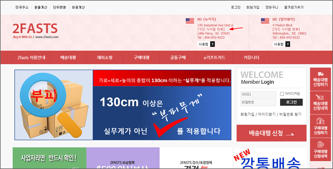 아래 2FASTS 라는 배송대행업체는 정확히 [개인 사서함 번호] 라고 적혀있어 오해할 소지가 없는데, 몰테일만 왜 저따구로 되어 있어가지고 사람 헷갈리게시리.... 신발스런...