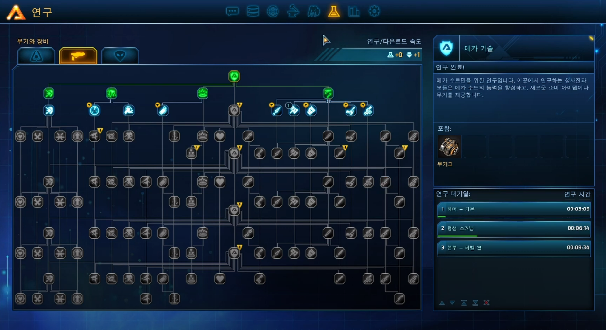 무기를 업그레이드 하거나 좀더 효율적인 건물, 타워들을 짓기 위해서는 "연구"를 해야 하는 과정이 필요한데,