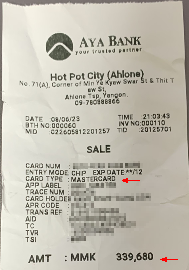 MMK 339,680 라고 써있는데, MMK 나 Ks 가 모두 미얀마 짯을 의미합니다.