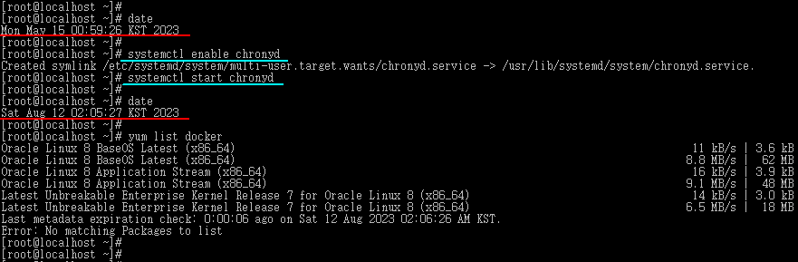 Oracle Linux 8 의 ntp데몬인 chronyd 를 실행해서 시간을 인터넷에 있는 Time Server 와 동기화시켜줬습니다.