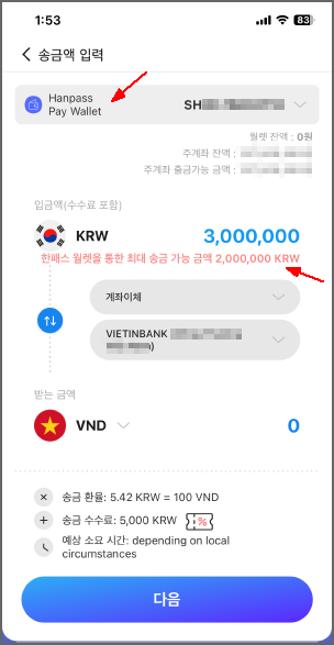 2023. 12. 17. 14:16한패스로 해외송금을 할때, 2백만원 제한에 걸려서 송금이 안되는 경우가 있습니다.