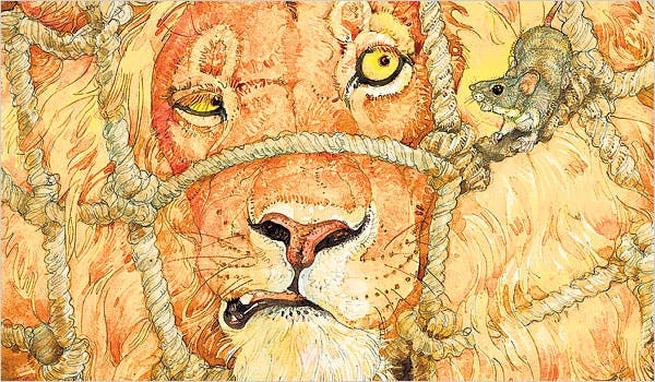 It befell the great Lion, not long afterward, to be in as evil a case as had been the helpless Mouse.