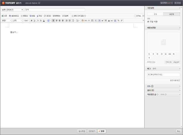 티스토리에서 네이버 따라한다고 편집창 UI 를 바꿨다나 어쨌다나 그러더군요.